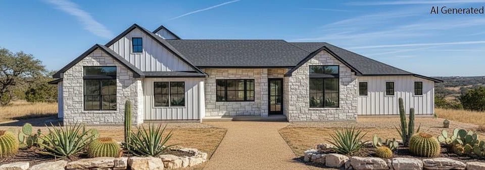 Discover your dream home & move in this fall: A custom-designed Modern Farmhouse on 3 private acres at the end of a cul-de-sac in gated Indian Hills. Luxury and Texas Hill Country charm await. This spacious home with cathedral ceilings features 3 bedrooms, a flex room (or 4th bedroom), and 3 full baths. The owner's suite offers double vanities, a private water closet, a walk-in closet, and a shower room with a separate shower and tub. The kitchen is designed for entertaining with beautiful granite counters, a large island and a working pantry to keep counters clutter-free. Enjoy a large wine display in the dining area, a convenient desk nook with shelving, and a utility room with extra storage. The "Texas basement" above the garage provides over 400 sq ft of storage! (Ask about finishing this space for more living area.) Relax on the covered porches. Contract early to pick your colors!
