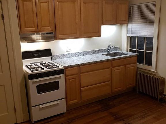One bedroom with eat-in kitchen, living room and full bath. Hardwood floors through with tile bath. Maple cabinet kitchen with granite counters. Gas stove. First floor unit with rear porch. Storage room in basement and coin-operated laundry. Professionally managed building and 24 hour surveillance system - secure building. One assigned parking space with additional parking on the street. Walk to Tufts University.. close to Medford square, Davis Square and Red Line T Station. On Bus Route. Heat & hot water included. Please no pets. Group Showing Monday 11/18 at 6pm!
