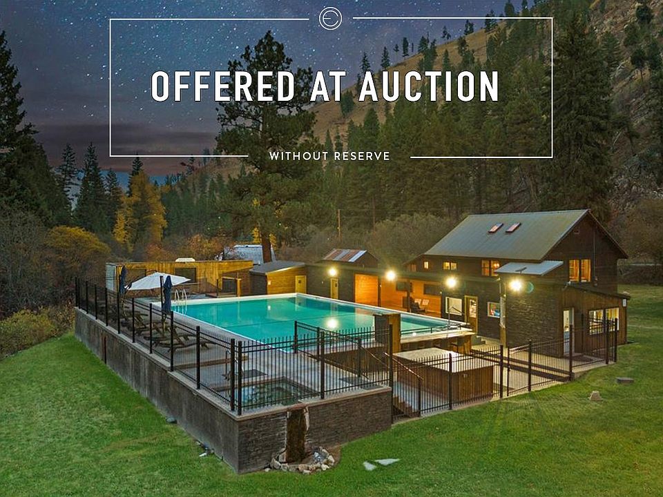 LUXURY REAL ESTATE AUCTION on-site on Tuesday, March 10th, 2026, at 11:00 AM. Previews begin on Saturday, February 21st, and will run every Saturday and Sunday from 1:00 to 4:00 PM until the auction. Private appointments are available; please call for details. Your Private Retreat Awaits in the Scenic South Bitterroot Valley! The estate features a natural, chemical-free hot springs pool, with the tranquil Warm Springs Creek flowing through its center, enhancing the peaceful and serene atmosphere. The main home provides 3,797 square feet of luxurious living space, creating the perfect exclusive sanctuary or family retreat. In addition to the main residence, the property includes an East Game Lodge and 12 historic cabins, 4 of which have been thoughtfully remodeled with an attention to detail. The guest cabins reap the benefits of the commercially upgraded septic system. Seize the rare opportunity to own an iconic and historic estate in the heart of the South Bitterroot Valley. The renowned Medicine Hot Springs property, set on 119 acres of pristine land, is now available! A historic three-tub bathhouse on the North side of Warm Springs Creek offers a glimpse into the past, inviting you to indulge in its timeless charm. Surrounded by Forest Service land on three sides, this expansive retreat offers you a chance to own a unique and historic property where nature, relaxation, and rustic elegance blend effortlessly. Buyers and their agents to verify all information. If you are interested in viewing the property and all the upgrades, we do require proof of ability to purchase. Please note, some photos for this listing have been virtually staged.
