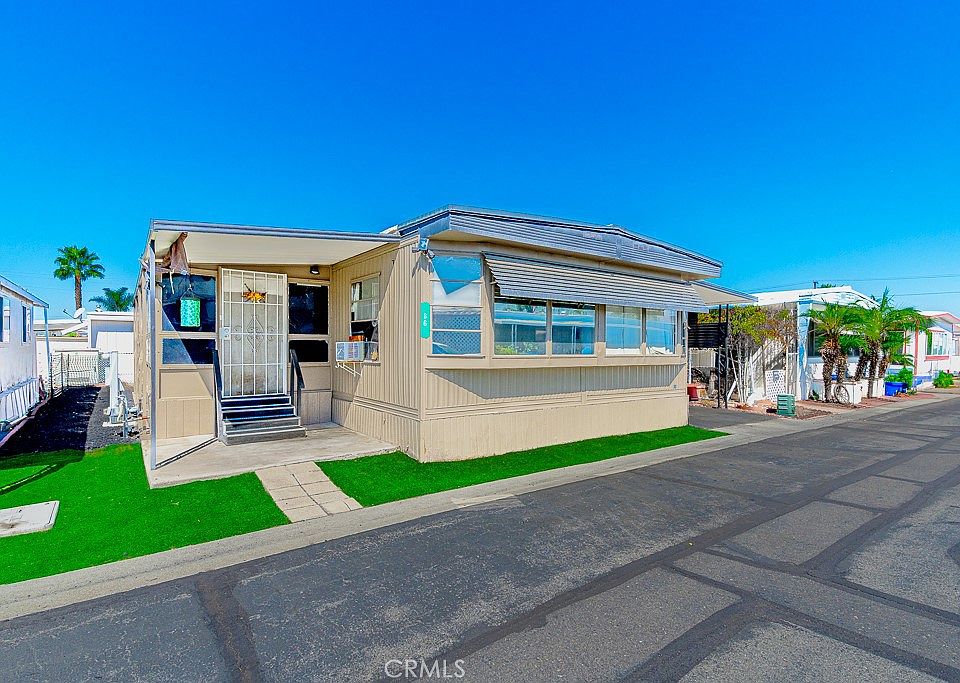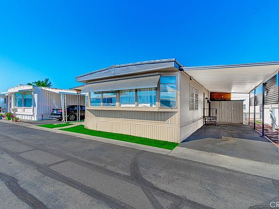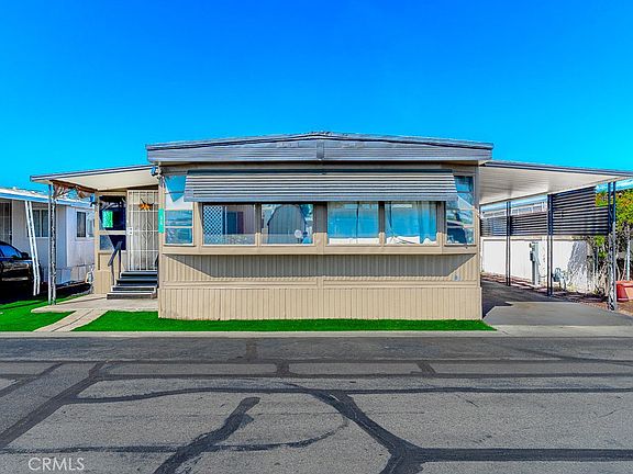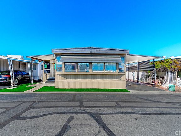 Welcome to this charming and affordable 2 bed and 2 bath home located in Devonshire Downs 55+ serene home park community! Primary bedroom is super spacious and features a full generous bathroom. This manufactured home comes with an open living space with a wide dining area and breakfast bar. Also, as a plus, the home does have an amazing and spacious sunroom right on the side of the manufacture home that can be used as storage or many more possibilities. Patio also comes with a spacious shed for storage. As if this wasn't enough, the community offers great amenities such as a sparking pool, a relaxing clubhouse and a billiard room. Conveniently situated near shopping, dining, casinos, and golf courses!! This home also offers easy access to both desert and mountain getaways. Just a drivable to distance to Palm Springs, Los Angeles, San Diego or Orange County!!Scheduled your private showing today!!
