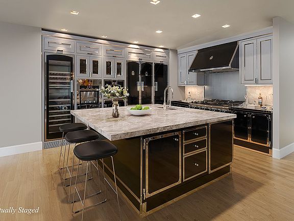 At the heart of the home is a custom-built Officine Gullo kitchen, handcrafted in Florence and valued at over $1 million - a true collector's centerpiece. Anchored by an 8-burner Gullo range and paired with top-of-the-line appliances, this kitchen is a professional chef's dream and a design statement in itself.