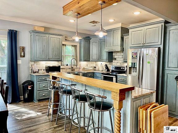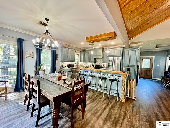 Escape to this stunning two-bedroom, two-bathroom elevated home, perfectly positioned on the riverbank with panoramic views of nature. The expansive open porch wraps around the entire home, featuring a cozy outdoor fireplace, ideal for cool evenings and entertaining guests. Designed for convenience and style, the home boasts a cargo elevator, a whole-home generator, and ample storage underneath for all your gear. Imagine building your own private boat dock right on the river to enjoy endless water activities. Whether you're seeking a serene retreat or a year-round residence, this unique property offers modern amenities with rustic charm. Don't miss your chance to own this waterfront gem!