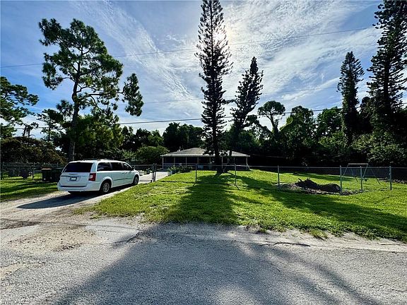 Great opportunity to own this close-in property on over a 1/2 acre fenced-in lot. The house features 3 bedrooms and 2 bathrooms with over 1,300sf, plus a large screened-in front porch to enjoy the huge yard and watch the beautiful Naples sunsets. There is a storage shed on the property as well, and the back of the property faces the preserve area for Esplanade G&CC, so lots of privacy on this dead-end road located near Gulf Coast H.S. Hard to find this size property so close-in with NO HOA!