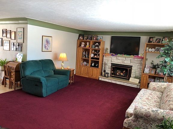 Super sharp ranch on an ACRE! Move in condition & immaculate throughout! Cozy gas log fireplace. Updated: kitchen, ceramic tile, furnace, C/Air, most windows, glass patio door Andersen, roof, bathroom, carpet, & much more. Deep, treed backyard with outbuilding for extra storage. Glass doors lead to entertaining deck. Partially finished basement with rec room. Attached garage. Walk in tiled shower. Low utilities. 3rd bedroom currently used as a den.