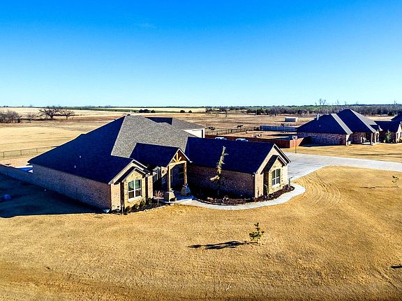 WOW! Stunning and truly unique 4 bedroom in Banner Creek addition, Totally custom with study, 3 1/2 Baths, 4 car garage sits on a 7 acre lot with trees, has everything you could need. 30x70 shop w/25x35 a/c room, including loft for storage. 16x36 in-ground pool w/slide, enclosed with brick fence, 50x80 fenced dog yard. Over sized covered outdoor living with outdoor kitchen area. Foam insulated walls, R-60 rated insulation in attic, and safe room. Kitchen has gourmet stainless steel appliances with double wide refrigerator and freezer, up-graded wood burning fireplace insert, Built in hutch in dining, huge island with granite, lots and lots of custom wood work throughout the home such as, built-in entertainment center, built-in storage in large office with barn door opening, barrel rolled ceiling in entry. Water softener. Additional RV parking. Too many extras to list, come take a look for yourself and you won't want to leave. Master ensuite has his/her closets, massive walk in shower.