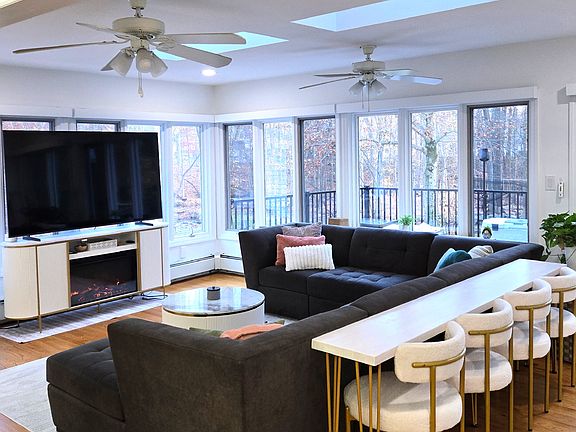 - Large family/sun room off of kitchen featuring high ceilings with skylights, new motorized blinds, and wall-of-windows offering beautiful views of the property.