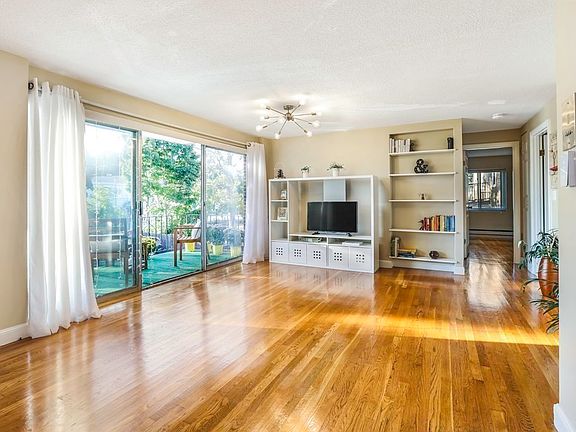 Welcome to your new home at the Plaza Condominiums. This corner unit has been renovated and painted. The unit has an open floor plan consisting of living room/dining room combo with sliders to your large private balcony. There are 2 generous bedrooms with ample closets & 1 full bathroom. Gorgeous hardwood floors throughout. Lovely updated kitchen with New granite countertops and new refrigerator and tons of cabinets. There is one assigned off-street deeded parking spot and a common laundry room for your convenience. Perfectly located it's just a hop, skip & a jump to the commuter rail, restaurants & shops. Pet-Friendly unit. Come see for yourself and make an offer!