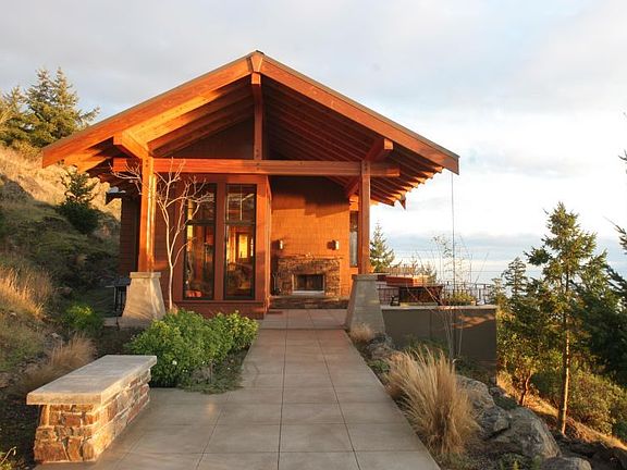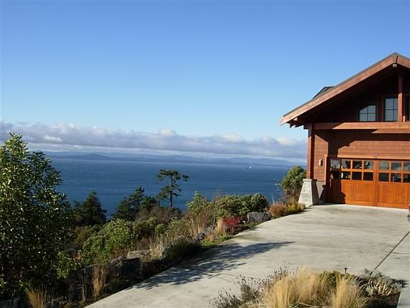 Architecturally designed water view home with 180 degree western views. Quality, Quality, Quality are the best words to describe the custom construction with numerous features. The home offers 3 bedrooms, an open floor plan designed for entertaining and capitalizing on the view via the numerous picture windows. Exterior decks and fireplace add to the entertaining factor. There is an additional living space over the detached garage/shop. Low maintenance landscaping. Main home is 2614 square feet plus 629 feet of guest space over the 1052 sf garage and shop.