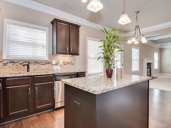 Located in Chastain Place, this 5 Bed/ 3 Bath 2925 Heated Sq Ft Home features Hardy Plank and stone accents that create a stunning first impression. A two story foyer introduces gorgeous hardwood floors that continue in the kitchen and formal dining room. Spacious great room with coffered ceilings, recessed lighting, and a cozy fireplace. Great room is open to dine-in kitchen with a pantry, stainless steel appliances, granite countertops, and a tile backsplash with decorative inlay. Formal dining room with coffered ceiling! Main level guest suite with full bath. All upstairs bedrooms have vaulted/cathedral ceilings, plush carpet, and ceiling fans. All bathrooms feature ceramic tile floors and granite vanities. Owner's suite boasts a sitting area and dual walk-in closets. Owner's bath has upscale finishes to include a garden tub, separate shower, and dual sink vanity. Wonderful outdoor living with a covered porch, fire pit, and privacy-fenced backyard that backs up to greenspace. Community pool, park, & walking trail. YEAR ROUND LAWN MAINTENANCE INCLUDED IN RENTAL RATE!! All appliances included: Range, Microwave, Dishwasher and Refrigerator! POOL MEMBERSHIP INCLUDED!! Pet friendly Home, pets ok with Pet Deposit.!