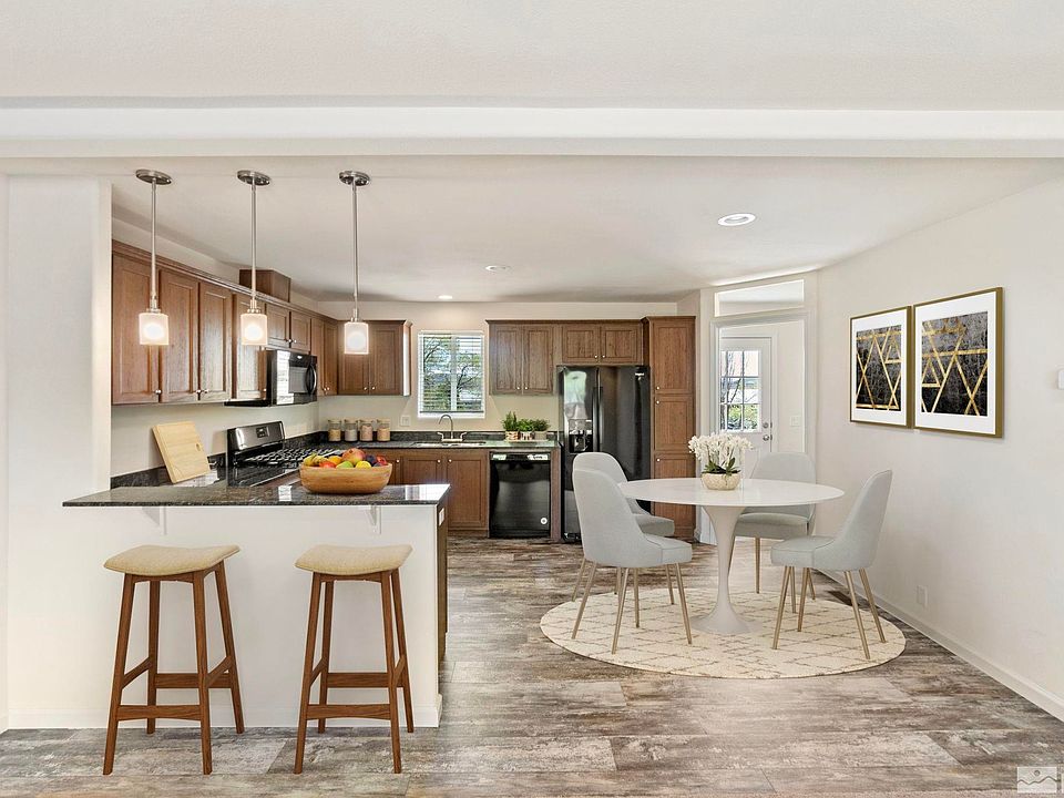 This stunning home has it all! Never been lived in home, brand new xeriscape landscaping. Minutes from highways 80/395 & downtown, this home is an easy commute. The home features three bedrooms & two full bathrooms. The kitchen features cherry cabinets, granite countertops and a full brand new appliance set including refrigerator. Rest assured, you can move in peace knowing that this home is completely turnkey!, Easy to care for wood-style sheet vinyl in the wet areas. Generously sized primary bedroom features a walk in closet, and the bathroom features a double vanity and walk in shower. Reno is known for the great outdoors and Nevada state tax benefits. RNO is an international airport and just a quick drive over the mountain to the world renowned Lake Tahoe.
