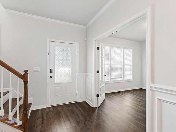 Spacious 4 bedroom 4 bath home on a large lot in Wilson Farms! Main floor guest suite with full bath, private den/office, grand foyer leading to open Kitchen and living room area warmed by fireplace. Eat-in gourmet kitchen with island, quartz countertops, butler's pantry, walk in pantry, SS appliances, gas cooktop, built in oven and microwave. Primary Suite with walk in closet, dual sinks and walk in shower. Large deck overlooks the spacious backyard. Tesla Charger outlet in the garage. A must see with this almost new, 2022 built home.