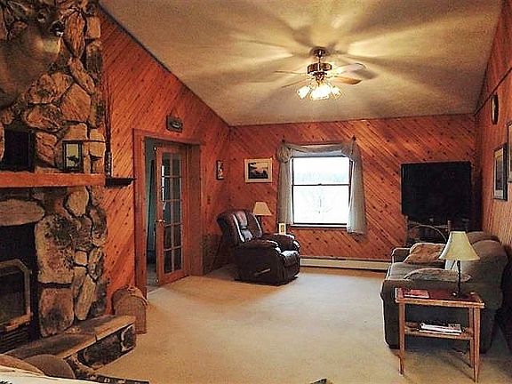Take a look at this four bedroom, three bath home. The home sits on an acre of land surrounded by fields. Inside offers an ample amount of space to entertain guests with ease. The living room, kitchen, and dining area offer an open concept with the focal point being a large stone wood burning fireplace and vaulted ceiling. The kitchen features oak cabinets and plenty of counter space. Go off of the living room, through the French doors into your own escape. Walk into a room with vaulted ceilings, tongue and groove, and ceramic tile. This area could be used for an office, sitting room, hot tub room and more. To the left you will find your master bedroom en-suite and the large master bedroom with an 8'x10' walk in closet. The other three bedrooms are on the other end of the home ensuring the privacy of the master bedroom. The other three bedrooms share a full bath that has a custom Cretens Brothers vanity. You have many options for the huge finished family room in the basement. You could turn it into a rec room, bar, sitting area, etc. This area has a half bath with a connected shower room for the sauna. Off of this area is the laundry room and a kitchenette. The owner used this area for canning. The boiler is only 2 years old and has four zones. The exterior features a large deck and gazebo off of the rear of the home that surround an above ground pool. The brick retaining wall and circle drive add to the curb appeal of the home. There is a two car drive under garage along with a detached one car garage. There is a playhouse in the backyard with electricity. The acre of land features 8 variety of apples, 2 variety of pears, concord grapes, and currants. The home is located in Wells Township which offers one of the cheapest tax bases in the county.