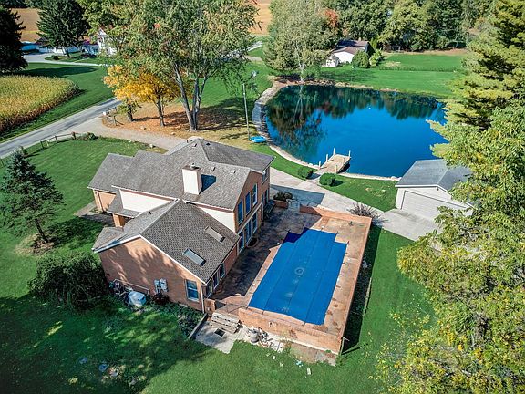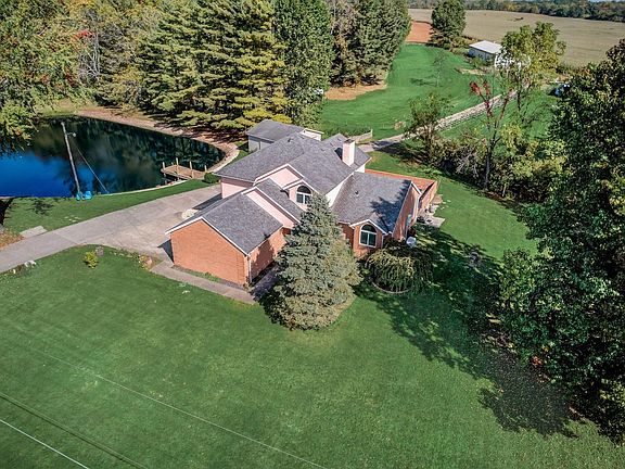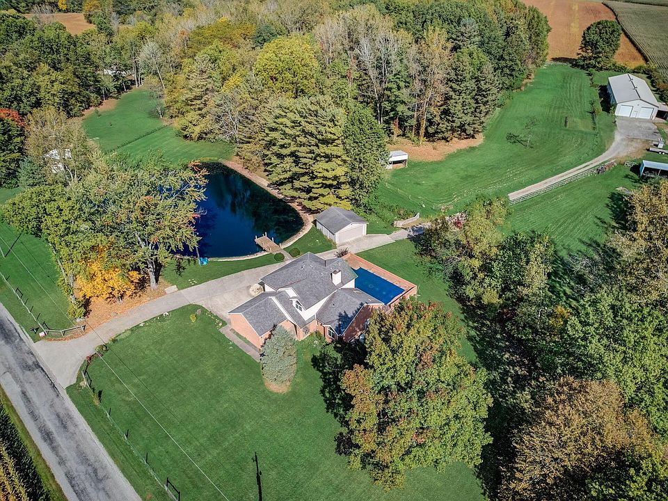 The two story, custom built, brick home has a front porch with a view, first floor owner's suite with access to the pool. The bonus room on the second level would make for a 5th bedroom if needed. Open concept in the kitchen/fmly room area for all your gatherings with access to the pool. Need more room? Below level has a finished area that can serve several needs with direct access to the garage. Let's talk outdoors. Stocked pond with aerator, 2 car detached garage, large yard area and stream. Barns & pastures: 40'x124' pole barn with concrete floors, 4 stalls, 2 tack rooms, water, electric and hay storage. Opportunities galore!