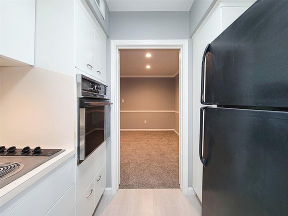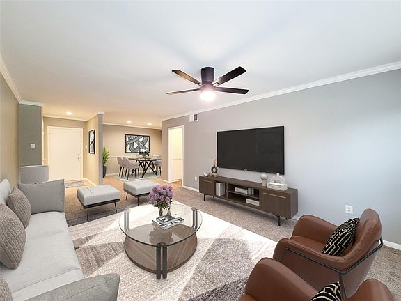 Large one bedroom condo with new carpet and paint, new remote controlled ceiling fans, ceiling canned lighting, and updated bath for an incredible price in this area! Balcony overlooking the beautifully landscaped courtyard is just steps away. All kitchen appliances, window coverings, and TV wall brackets remain. Priced so that you can do more personal updating to fit your style. This top (2nd) floor condo has easy access to the stairs, elevator, and the upstairs central laundry. All the utilities, a/c and water heating equipment, and much more included in the maintenance. There is one dedicated covered parking space in a secured area and one storage space. Three sparkling pools serve all of the residents. The location is convenient to Rice Village, Rice U and to the Med Center, plus is near major freeways. Make your appointment to see it today!