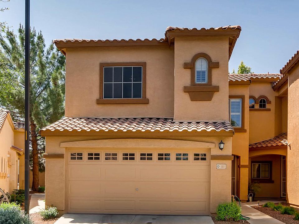 Welcome home to the beautifully appointed three bedroom and 2.5 bath townhouse. The end unit backs to an open space greenbelt area. The main floor has newer tumbled travertine flooring, new stainless steel appliances and an upgraded kitchen. Upstairs opens up to a large loft area, a master with a walk-in closet and garden tub and two additional bedrooms. The covered patio has epoxy flooring and leads right out to the greenbelt. The home has new two tone paint and plantations shutters throughout. The two car garage has epoxy flooring and lots of room for storage.