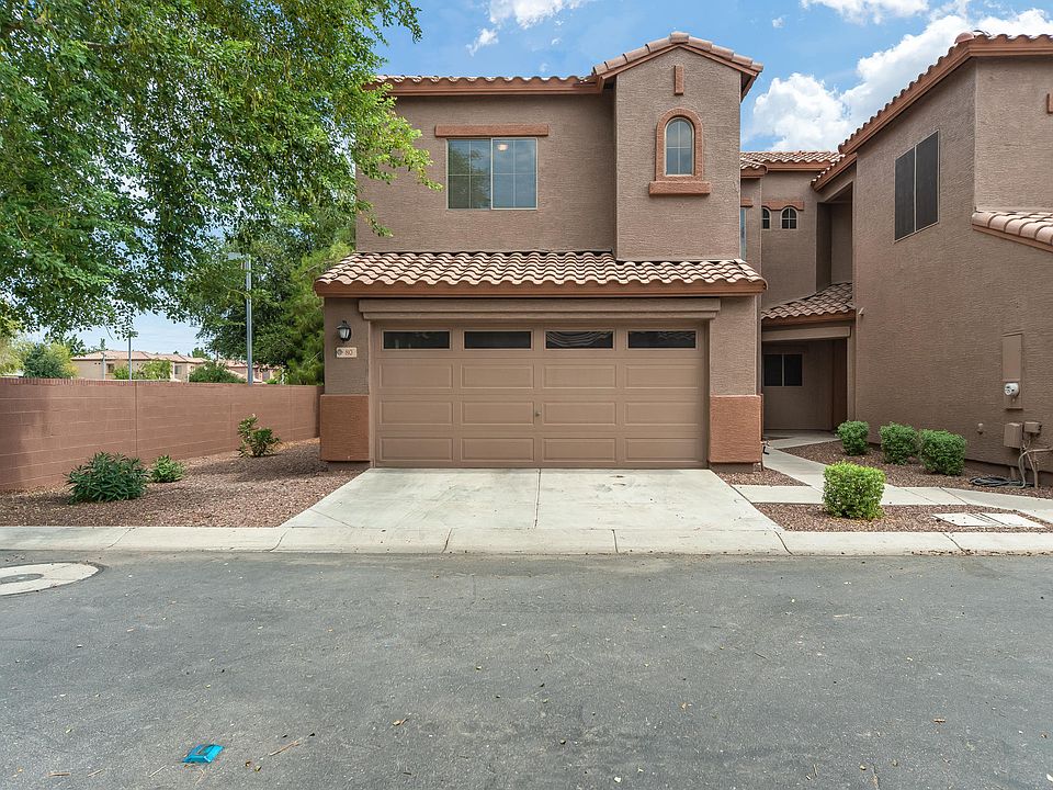 This charming 3 bedroom, 2.5 bathroom townhome in the Rancho Del Rey community lets natural light settle in all the right places! Step inside to discover fresh interior paint and polished tile flooring throughout the main level. In the eat-in kitchen, you'll love having stainless steel appliances, a new dishwasher, and a breakfast bar! The brightly lit dining area is the perfect spot to enjoy a meal with your family or drink your morning coffee. On the second level, the primary bedroom boasts a private ensuite bathroom. When you're looking to get some fresh air, venture out onto the spacious covered patio, or head down to the community pool to catch some sun. This conveniently located home is nearby a park, shopping, restaurants, and has easy access to the 202 Loop!