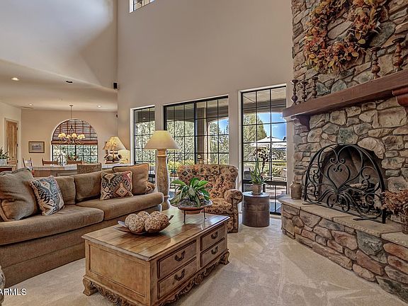 Striking stone fireplaceBreathtaking mountain viewsDouble ovensLush mature landscapingPerfectly appointed homeGranite counter topCustom cabinets