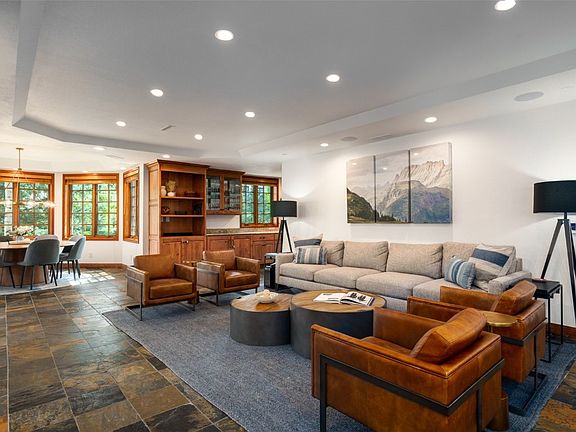 An exceptional opportunity to own one of only seven residences in The Atriums, a gated enclave just a short stroll from the base of the mountain. This four-bedroom, four-and-a-half-bath penthouse has been extensively remodeled and professionally designed, blending top of the line finishes with everyday comfort. The main living area boasts a striking Taj Majal Quartzite gas fireplace, heated slate flooring, and dining room surrounded by windows. The kitchen features custom wood cabinets, granite counters, high-end appliances and a wine refrigerator.