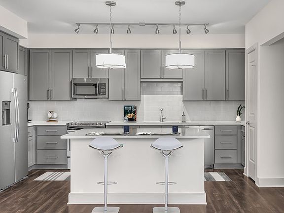 - Exterior features: , 10 ft. ceiling, 24x7, 2, 500 sq ft fitness club, 42-inch shaker, soft-close cabinetry, Balcony, Barbecue, Bicycle storage, Brushed nickel hardware, Business Center, California-style closet, Close to amenities, Clubroom, Concierge, Conference Room, Conference rooms, Corner apartment with extra windows and natural li, Courtyard, Dark gray shaker cabinets, Electric Vehicle charging stations available throu, Garages, Gray subway tile backsplash, High-speed Internet Ready, Housekeeping, Meeting rooms, On-Site Maintenance, On-Site Management, Outdoor Terrace, Package Receiving, Pet Park, Quartz countertops, Rooftop terraces, Stainless steel appliances, Sundeck, TV Lounge, Three Resident Lounges, Top floor, View Type: Wooded view, White shaker cabinets, Wi-Fi in common areas, Wood-style floors