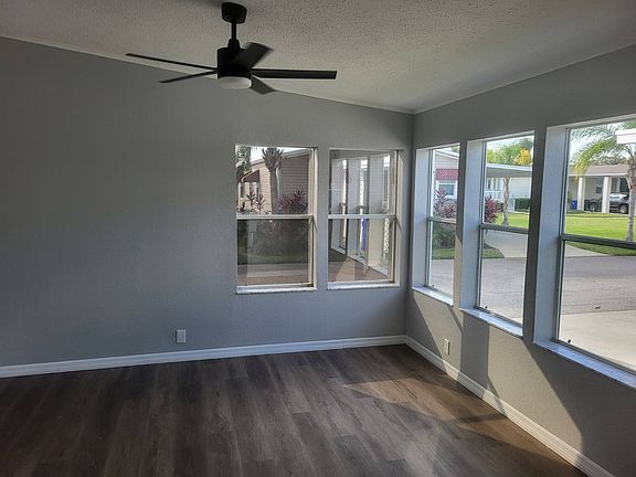 2-Bedroom 2-Bathroom home has been totally updated. New luxury vinyl plank and ceramic tile flooring throughout. Updated Kitchen has white cabinets, granite countertops and new stainless-steel appliances. Bonus room on front. En Suite bath has walk-in shower and double sinks granite vanity. Updated ceiling fans and lighting. Laundry closet. Enclosed Florida Room has ceramic tile flooring and acrylic sliding windows for added space. Metal roof, Great location between Tampa and Orlando. Near Theme Parks, Doctor Offices, Shopping and Restaurants. Desirable community of Mas Verdes. Don't miss this one. Call today to view.