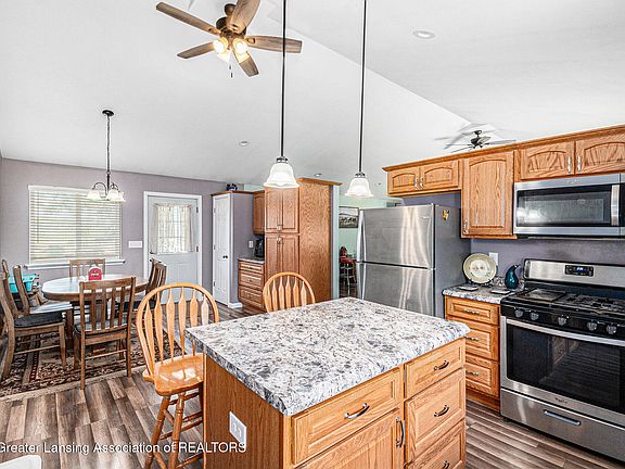 Welcome to 2600 Heeney Road, a 2 bedroom, 2 bathroom ranch built less than 3 years ago, offering modern comfort and timeless charm in a scenic country setting. Located less than 5 miles from downtown Stockbridge and within 20 minutes of US-127 and I-96, this home balances the convenience of an easy commute with the tranquility of wide-open views. Step inside and enjoy the stylish finishes throughout, where vaulted ceilings soar over the living room and kitchen/dining space, creating an airy, light-filled atmosphere. The eat-in kitchen is as functional as it is stylish, featuring stainless steel appliances, oak cabinetry, and a spacious island for gathering. The bedrooms offer generous closet space and neutral tones. Main-floor laundry, energy-efficient spray foam insulation, and a recently serviced water softener provide everyday ease and peace of mind. The partially finished basement expands your living space, with a drywalled and insulated section complete with egress windowsoffering the potential for a 3rd bedroom. Outdoors, this property shines with its large back deck overlooking sweeping views, a welcoming covered front porch ideal for morning coffee, and a generous yard with mature trees, a firepit, and a storage shed. The 2-car attached garage is built with 11 ft. sidewalls and electrical wiring for both 110v and 220vperfect for the hobbyist or mechanical enthusiast. This move-in ready home combines comfort, efficiency, and rural tranquility. Call us today to schedule your private tour!