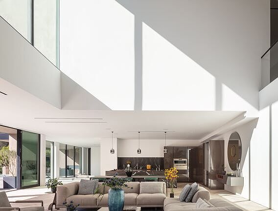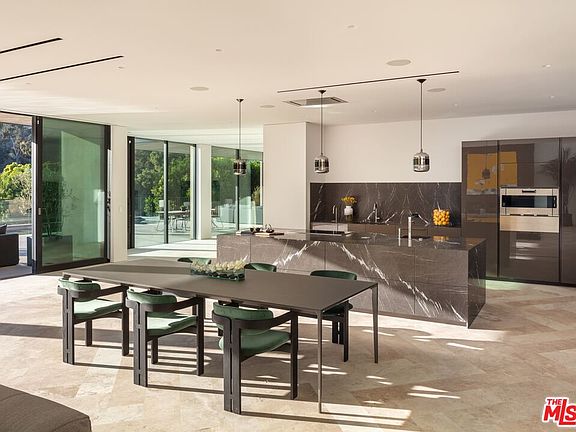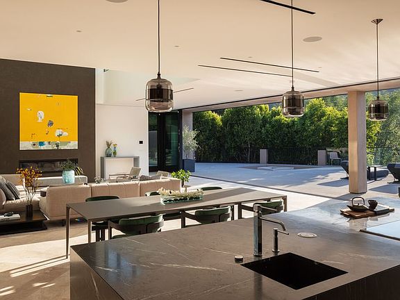 Constructed with the finest of materials and an innovative design, this contemporary estate offers the opportunity to live within a work of art while holding a coveted Beverly Hills address. Located along the verdant hillside of Benedict Canyon, this master work home by Viewpoint Collection is highlighted by its lush green vantage points across the canyon, intricate architectural details, and uniquely inspired amenities, while offering an ease of access to all of Los Angeles. Newly rebuilt with the finest craftsmanship, the home includes five bedrooms and 5.5 bathrooms, spanning over 6,500 square feet. Secluded behind a private gated facade, the modern concrete and stucco exterior gives way to a warm interior filled with natural woods, imported stone, dramatic ceilings, and expansive glass walls to take in the lush hillside views. A double-height great room for living and dining lies next to a gourmet kitchen, sunken television room, and secondary office/bedroom, all with access to the expansive terrace and oversized pool with spa. All of the bedrooms and bathrooms have been outfitted with designer finishes and luxe fixtures, with the primary en-suite in particular featuring a spa-grade bathroom, dual custom closets, and a private 1,500-square-foot balcony complete with a fireplace and wet bar. Underneath the pool, a secondary area with its own address has been built out with a separate entrance, kitchenette, bathroom, and steam room. Rounding out the property are additional features such as best-in-class smart-home systems, an electric vehicle charging station within the attached garage, a poolside outdoor kitchen, and availability for solar panels, if desired. Ultimately, this property was intuitively crafted with luxury comfort and ease of entertaining in mind, allowing for unforgettable intimate gatherings and one-of-a-kind casual affairs of all scopes and sizes.