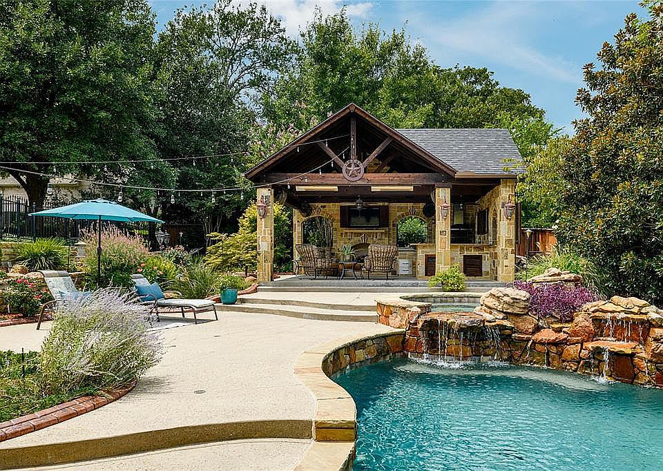 DFW estate centrally located in the heart of Colleyville w-abundant space for entertaining & living inside & out! Immaculately landscaped w-multiple areas for recreation including gorgeous pool w-spa, outdoor living area equipped to entertain at its finest; automatic screens, beautiful stone fireplace, equipped kitchen w-built in grill, fridge & surround sound & wired for two flat screen tv's. Home designed for extraordinary living with abundant space. Study w-built-ins down, gourmet kitchen, dining, breakfast & living areas all wrapped together w-fabulous views; oversized bedrooms w-en-suite bathrooms and abundant closet space. MB & guest dwn. GM, gym, theater & open flex space up w-built-ins & full wet bar.