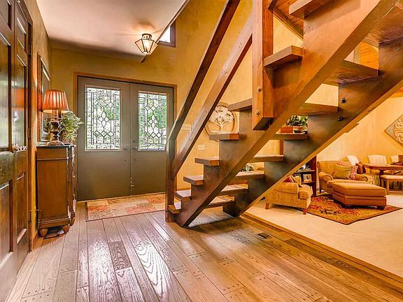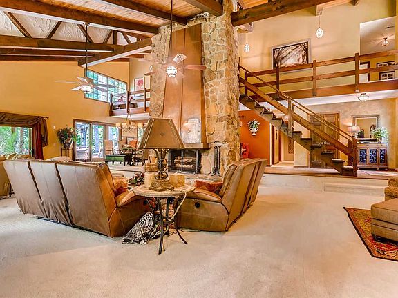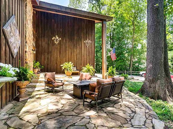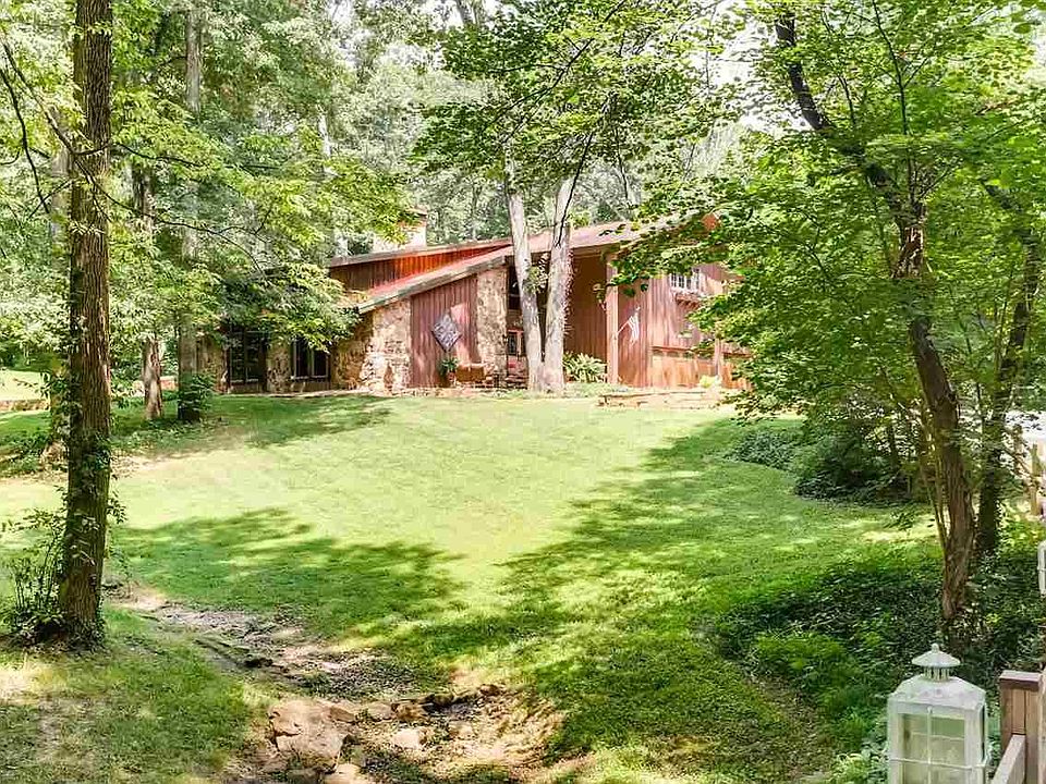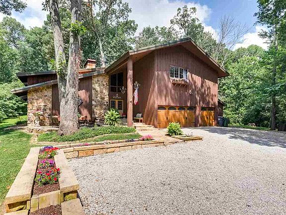 Luxury Lodge nestled on 2 wooded acres in the Melody Hills area across the street from a private lake with a beach. This one of a kind property tucked away on a dead-end street won't last long! It boasts a soaring two-story great room with a cedar-beamed ceiling and a majestic wood burning fireplace with a 12-foot copper mantle. The park like setting has a large built-in outdoor stone fire pit with an exterior shelter for wood storage and 5 outdoor patios and decks to enjoy with friends and family. The open floor plan and Chef's Kitchen with custom hand-hewn beams in the ceiling is an Entertainer's dream. The floor-to-ceiling windows provide a panoramic view of the beautiful landscaping. There are three en-suites on the upper level and 2 additional bathrooms on the main floor. The home office/library has floor to ceiling hardwood built-ins. There is a copper roof with a 150 yr estimated life.The 3 wood-burning fireplaces have all been professionally cleaned/serviced annually. The balcony off of the Master Bedroom is serene and private. The basement was recently finished and also has an incredible wine cellar. The 3 car garage has new highly-rated custom doors and there is additional built-in outdoor storage. This home also has tons of indoor storage including a 6' by 25' closet in the basement. This home is sure to impress! Recent updates include: flagstone patios, front steps and pathways, 2 front porch chandeliers 2017; garage doors 2016; one air conditioning unit 2015; freshly stained exterior 2018; new Bosch dishwasher 2017.