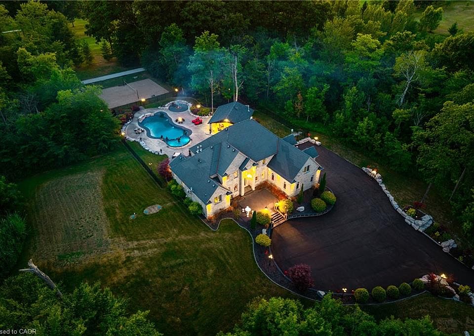 Welcome to 2600 Maple Street in Fenwick, a custom-built 2-storey estate set on over 4.26 acres backing onto Sawmill Golf Course. This stunning property offers approx. 7,300 sq. ft. total finished living space with 4 bedrooms, 5 bathrooms, and a layout designed for both everyday living and entertaining. The main floor features a spacious open-concept kitchen, dining, and living area with abundant natural light, plus a private primary suite complete with double walk-in closets and spa-inspired ensuite. The fully finished lower level includes a second kitchen, full bar, games/lounge area, a theatre, 3 piece bathroom and a separate entrance—ideal for in-laws or guests. Step outside to your own resort-style oasis: an inground pool with attached cocktail pool, covered pavilion with 2 piece bath, professional landscaping, beach volleyball and bocce courts, and expansive patio areas for entertaining. With over 300 ft of frontage, a 3-car garage, and ample parking, this property offers unmatched space and privacy while being just minutes from local amenities. Custom built and meticulously maintained, 2600 Maple is the perfect blend of luxury, lifestyle, and location. Luxury Certified.