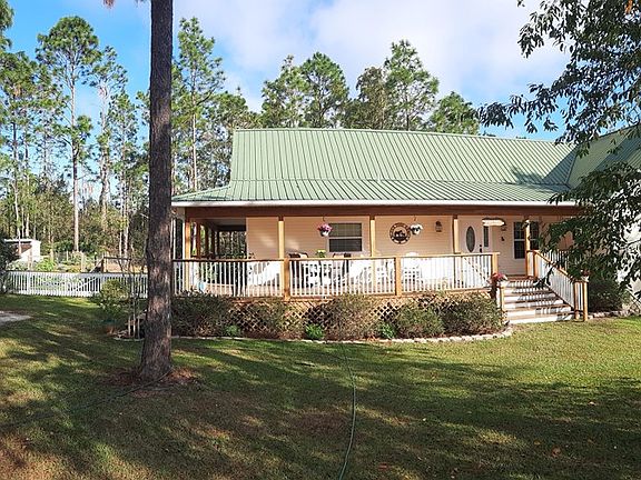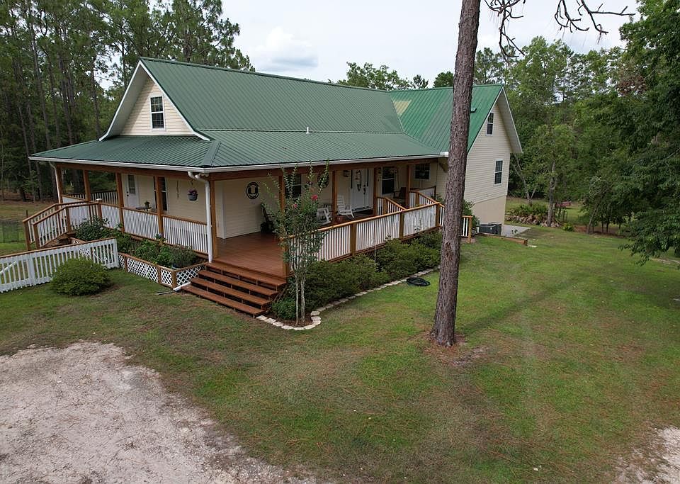 Looking for a secluded family compound in the country? This one may check all of your boxes! This beautiful estate is located in Gilchrist County in North Central FL and includes nearly 10 acres of privacy, pastures, gardens, and space for your extended family and pets too! The areas around the home have been meticulously landscaped with ornamental bushes and trees, a fenced garden area, and easy access chicken coop for gathering fresh eggs for your family. The home features wrap around porches with great views of the property and spectacular sunsets. Inside on the main floor you will find about 1800 square feet of living space that includes 3 bedrooms, 2 bathrooms, and a large living/great room with vaulted tongue and groove pine ceilings. The kitchen and dining area are spacious enough to serve all of your family and friends. The kitchen features new stainless appliances, ample counter and cabinet space. a breakfast bar and a pantry. A loft library overlooks the living room, and features built in book cases and a desk, and could easily be converted into an add'l bedroom. One of the guest rooms on the main floor has a secret surprise in the attic space with an additional 360 sq ft of air conditioned play room/storage space. Downstairs you will find a full 1 or 2 bedroom walk out basement apartment, with full bath, full island kitchen and spacious living room, 9 ft ceilings, a private covered porch, and direct access to the 3 car garage and laundry hookup. The home sits well back on the property and is not visible from the road. There is a 2 stall horse barn with a 12x24 feed/storage/tack room, and a small separate hay barn. There are 3 separate pastures for separation/rotation. Property is located about 35 minutes from Lake City, and 40 minutes from Gainesville. Only 5 minutes to the small town of Bell, where you will find all of the everyday necessities, and friendly folks and neighbors! Gilchrist County has A rated schools, low property taxes, and is a great place to foster a homestead or raise a family, or both! We look forward to scheduling your private tour.