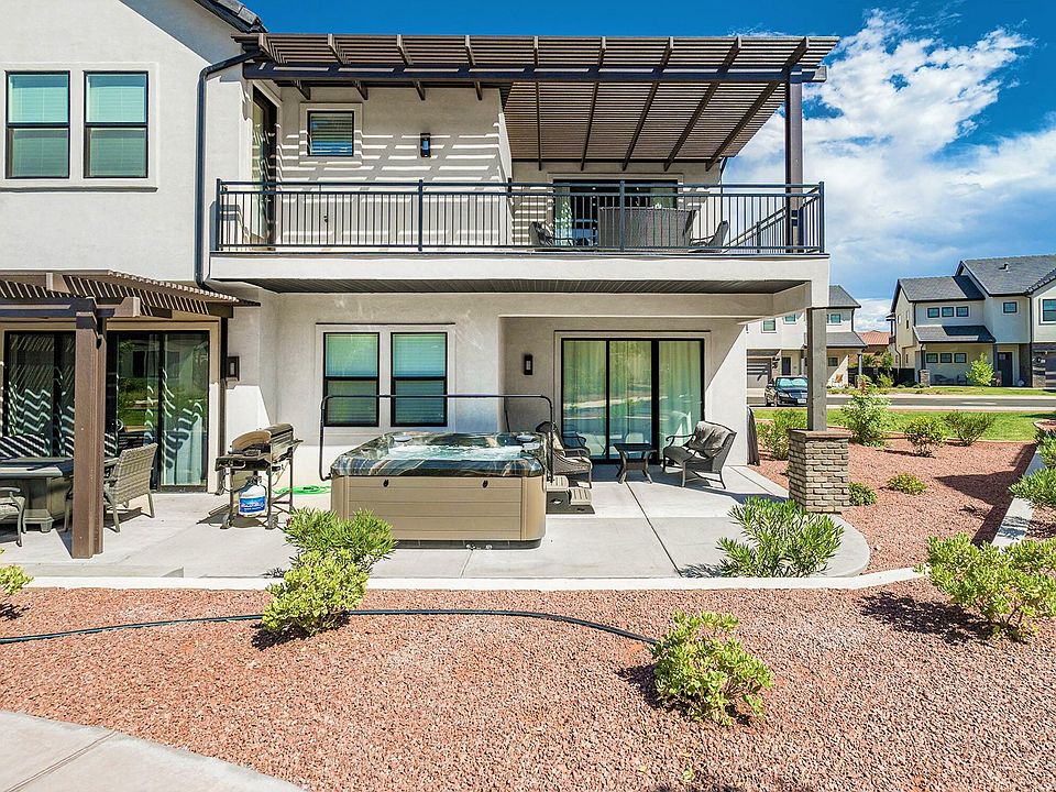 Experience the best of Ocotillo Springs Resort in scenic Santa Clara. This fully furnished 5-bedroom, 5.5-bathroom townhome offers nearly 3,000 sq ft of thoughtfully designed space, ideal for relaxing getaways or as a short-term rental investment. Built in 2020, it combines modern comfort with incredible resort-style amenities. Inside, you'll find a spacious open floor plan, designer finishes, an in-home arcade, and a private 2-car garage with an EV charging station. Step outside to your own private hot tub and BBQ areaperfect for entertaining after a day of adventure. The home is ideally located directly behind the community pool, splash pad, and pickleball courts for easy access to family-friendly fun and relaxation.