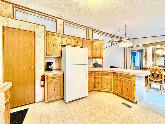 Located in a quiet 55+ community close to town, this clean, well-kept, and affordable manufactured home is move-in ready. The attached garage provides sheltered parking and is deep enough to accommodate a workbench area for projects or extra storage. Step inside to a welcoming entryway with a coat closet conveniently located straight ahead. The spacious kitchen features an eat-in bar top, comes equipped with appliances, and opens to the dining area—complete with patio doors leading to the back deck. The deck is a great spot for relaxing or entertaining while enjoying the peaceful surroundings. The large and comfortable living room is filled with natural light from multiple windows. The primary bedroom offers ample closet space and a private full bathroom. On the opposite end of the home, you’ll find two additional bedrooms and another full bathroom—providing a comfortable and functional layout for guests or hobbies. Outside, the beautiful backyard offers peaceful setting—perfect for enjoying nature, watching birds, or simply unwinding. A storage shed adds even more convenience.