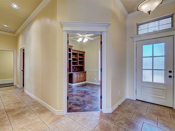 ***Motivated Seller-Bring offers!***Rock Creek Addition! NEW ROOF JULY 2023. Beautiful Home with open floor plan and over 2400 square feet of living space. Don't miss this wonderful 3 spacious bedroom home with a beautiful office with custom cabinetry, AND a bonus room! Located on a corner lot directly across the street from the neighborhood playground. Don't miss the large kitchen with custom cabinets, breakfast bar, center island, and large pantry. Spacious primary bedroom w/Australian closet, jetted tub, separate shower and double vanities. The bonus room offers endless possibilities for a 4th bedroom, a playroom/media room, game room, or workout room. The office has beautiful built-ins, perfect for a home office. The backyard has an expansive covered patio with an extended deck and garden area. Storm Shelter in Garage! Located in a Highly Sought After Quiet Neighborhood w/ Pool and Park.