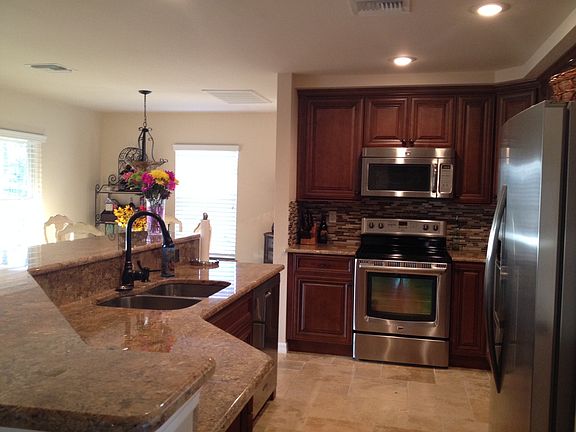 Beautiful 3 Bedroom, 2 Bath, 3 Car Garage with a Den is new inside and out. Built in 2006 and 2000 sq. ft. under air. Appointed with Travertine Floors and Showers, Granite Countertops and Wood Cabinets. Spacious Master Suite with Walk In Closet and Master Bathroom. Large Travertine shower with glass wall, Granite countertops, wood cabinets and Vanity. Nice size guest rooms with nice bathroom with oversized tub/shower. Kitchen has Stainless Steel Appliances. Spacious Lanai is perfect for entertaining, relaxing or watching sunsets. Hard to find 2 1/2 Acre lot is ready for building outbuilding. Perfect for Toys, Hobbies, cars or RV.