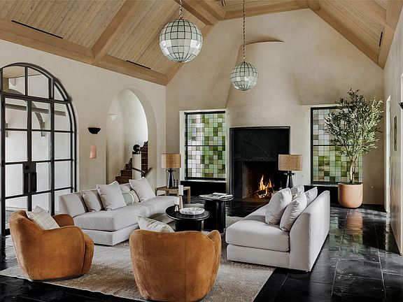 Tucked at the end of a quiet cul-de-sac and set behind a seven-foot privacy wall, 2600 Tanglewood Trail is a one-of-a-kind architectural masterpiece in the heart of Tarrytown. Built by Dalgleish Construction on over half an acre, this home marries Old World craftsmanship with modern design, offering enduring elegance and contemporary comfort in one of Austin’s most coveted neighborhoods. The Vermont slate roof and custom steel-framed doors and windows by Presidio set the tone for the bespoke interiors within. Hand-applied plaster walls, two-inch Calacatta marble with chiseled edges, black limestone imported from India, and reclaimed barnwood floors create a richly layered aesthetic. At the heart of the home, the kitchen makes a striking statement with its sculptural 19-foot steel vent hood, custom white oak cabinetry, and top-of-the-line appliances. The adjacent living area features a custom brass-plated bar with illuminated shelving, while the great room, highlighted by a coffered spruce ceiling, soapstone fireplace, and stained-glass accents brings warmth and sophistication to everyday living. The first-floor primary suite serves as a serene retreat with dual spa-like bathrooms featuring heated limestone floors, Moroccan Zellige tile, unlacquered brass fixtures, and electrochromic privacy glass. Upstairs, reclaimed barnwood floors and skylit hallways lead to spacious bedrooms with custom baths and integrated built-ins. Designed for seamless indoor-outdoor living, the backyard resembles a private resort with a pool and spa by Cascade Custom Pools, lush landscaping, and architectural lighting. The covered Moroccan-inspired terrace offers heated flooring, a fireplace, and a soapstone grill station for year-round entertaining. A rare opportunity to own a newly built Dalgleish home in one of Austin’s most established neighborhoods.