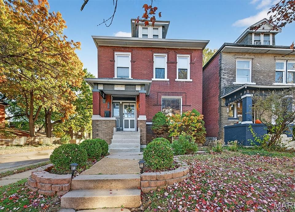 WOW, welcome to this historic and tastefully renovated Tower Grove beauty with charming curb appeal! Step inside to find a light-filled living room featuring beautiful hardwood floors throughout, creating a warm and inviting atmosphere. The open layout seamlessly connects the living room and kitchen, providing an ideal area for entertaining. The kitchen showcases granite countertops, breakfast bar, stylish subway tile backsplash, stainless appliances, and custom cabinetry. Kitchen opens to the dining area for easy gatherings. A convenient half bath completes the main level. Upstairs, the spacious primary suite offers a full private ensuite bathroom with dual sinks, a marble vanity and conveniently located laundry!! 2 additional bedrooms and a full bath complete the second floor. The third floor features an expansive room that could serve as a fourth bedroom, home office, game room, or family room. Enjoy the privacy of your fenced backyard and deck that leads to a 2 car carport. Located within walking distance to Tower Grove Park and many beloved St. Louis favorites, this home perfectly blends historic charm with modern comfort. BRAND NEW ROOF!!!