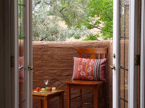 2 bedroom/2 full bath 2nd floor condo is amid beautiful outdoor spaces with extensively landscaped grounds including 2 ponds. Spectacular mountain range views from the private balcony. On site heated swimming pool, sauna and laundry facilities. Enjoy the comfort and special touches complete with upgraded appliances, kiva fireplace, wood beams, evaporate cooling, carpet and saltillo tile floors. Close proximity to downtown Santa Fe Plaza, shopping, community amenities and medical facilities.