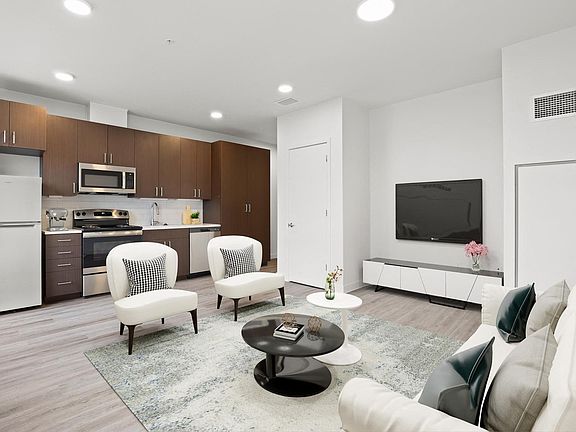 - Exterior features: Bicycle storage, Community Kitchen/Lounge Area, Electric Vehicle Charging Stations*, FOB Entry, Fitness Room, Full Sized Kitchen Appliances, Golf Simulator, Granite-Style Countertops, Modern Finishes, Neighborhood Festivals & Social Engagements, New Construction, Package Receiving, Pet-Friendly, Private Juliet and Full-Sized Balconies*, Reserved Parking**, Rooftop Deck/Patio, TV Lounge, Wood-Style Flooring