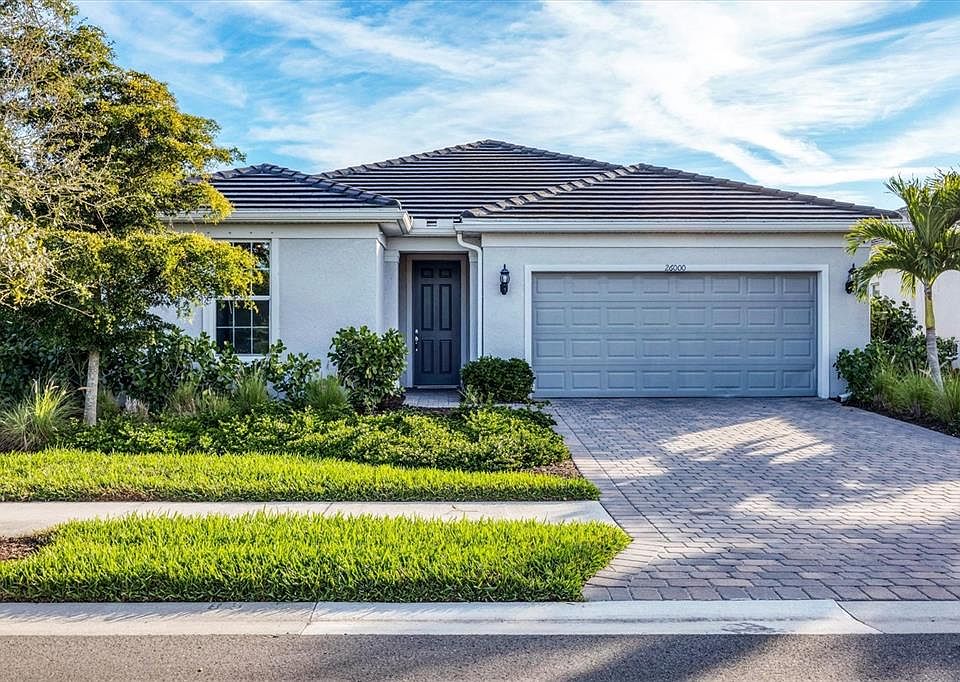 4.5% VA ASSUMABLE LOAN! Live the Florida resort lifestyle in this beautifully designed 2022 single family home located in the guard gated community of Beachwalk by Manasota Key. This popular Palmary floor plan offers 2 bedrooms, 2 bathrooms, PLUS an office, den, or flex room, providing the perfect balance of comfort and flexibility. The spacious open concept layout connects the living area to the large kitchen, featuring a generous center island ideal for entertaining or casual dining along with a spacious walk-in pantry for excellent storage. The primary suite is a private retreat with a spa inspired en suite bathroom and a large walk-in closet. Step outside to enjoy year-round outdoor living on the expansive lanai that spans the width of the home, perfect for relaxing or hosting gatherings. Residents of Beachwalk by Manasota Key enjoy amenities that include a tropical saltwater resort pool with lap lanes and a heated spa, a restaurant bar and grill with indoor and outdoor seating, and an impressive clubhouse offering a state-of-the-art fitness center, two movement studios, card rooms, and a grand outdoor veranda. Outdoor features continue with fire pits, six bocce ball courts, ten pickleball courts, five tennis courts, a lakeside boardwalk with pier and gazebo, along with a dog park and community garden. Ideally located just minutes from Manasota Key beaches, Downtown Wellen Park, shopping, dining, and golf courses, this home offers the ultimate Florida coastal lifestyle. Ask your agent for the QR code to Floor Plan, 3D Tour and Property Details.