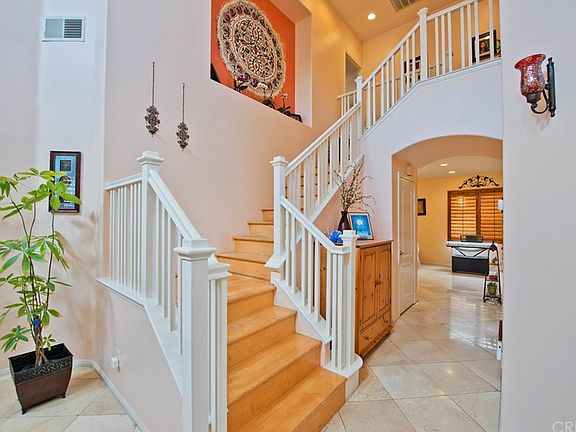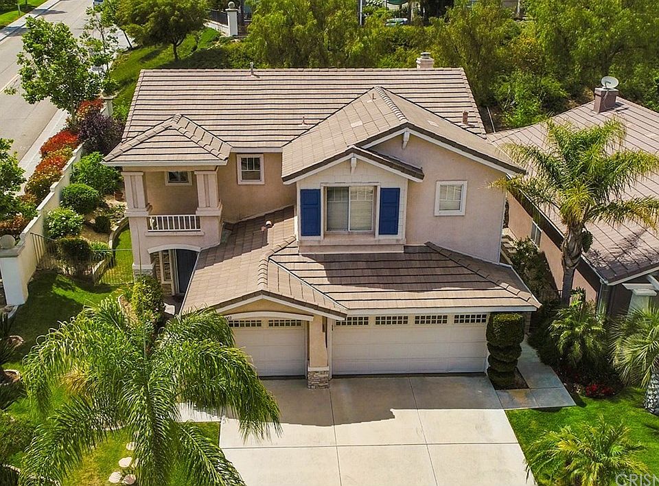 Corner lot home in the heart of Stevenson Ranch with beautiful curb appeal and roses as you enter the home. Light and bright kitchen features white cabinets, granite countertops, kitchen island, computer nook, stainless steel sink and newer stainless steel microwave and dishwasher. Spacious family room with a fireplace. Separate dining room and formal living room. Upgrades throughout the home include plantation shutters downstairs, marble flooring downstairs and wood flooring upstairs. This home is equipped with a single tank water filtration system, ring doorbell, newer heating and air conditioning system with a programmable Wi-Fi Honeywell Thermostat and ceiling fans in the bedrooms. Downstairs bathroom with shower. All four bedrooms are located upstairs. The upstairs hall bathroom features dual sinks. Large master bathroom with dual sinks, vanity area, separate tub and shower and large walk-in closet. Great view of the Stevenson Ranch 4th of July fireworks show from your own yard. Enjoy the luscious green grass, beautiful roses and orange, nectarine and fig fruit trees in the backyard. Revamped irrigation system in the back and side yard. Laundry room conveniently located downstairs inside home. Spacious 3-car garage with tiled flooring and direct access to home. Close to award-wining California Distinguished Schools, freeway, shopping centers, parks and entertainment. Low HOA!