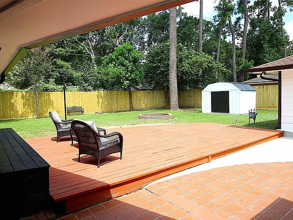 Welcome to Woodglen! ... Excellent location, near The Woodlands Mall. Low Taxes & no HOA, on a large lot with mature trees & a wide extended driveway with rear yard access. The floorplan features a soaring ceiling living room, a wood burning gas fireplace, wood floors, 6 panel doors, dual pane windows, new paint, electrical & plumbing fixtures, 3 bedrooms, 2 full baths (tub & showers), a recent roof & Hvac system, full perimeter rain gutters, and a private park-like backyard with fire-pit, spacious deck, storage shed, and an air conditioned finished garage. The chef's kitchen features granite countertops with glass backsplash, stainless steel appliances, a single deep basin sink, new cabinets, a pantry, and a full-sized utility room. Quiet neighborhood, Top rated schools, Not in flood zone. Move-in ready/ Schedule your showing today!
