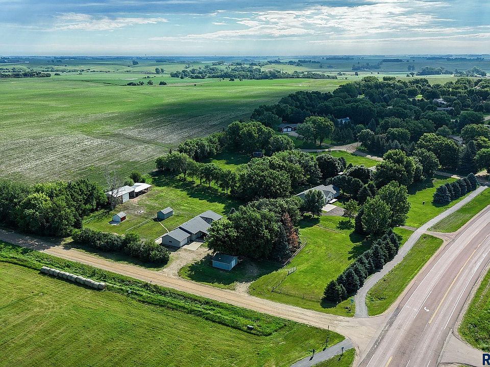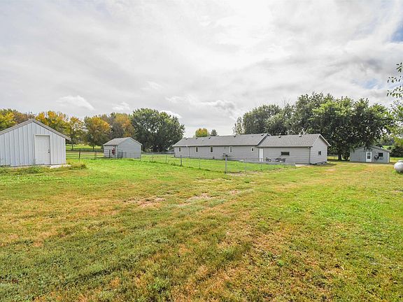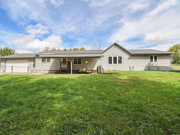 Discover this delightful ranch-style home nestled in a serene acreage setting, conveniently located just minutes from Hartford and near interstate access. This property is perfect for both new acreage owners and hobby farm enthusiasts. Enjoy over 2,000 square feet of living space on the spacious main floor, which features four bedrooms and two bathrooms. There is also a main floor laundry and potential for expansion in the lower level. The kitchen, perfectly situated at the center of the house, offers ample counter space and an open layout that connects to the dining room. The generously sized living room is filled with natural light, creating a welcoming atmosphere. Benefit from abundant storage options throughout the home, including a walk-in pantry and a laundry room. The property includes a two-stall attached garage and a one-stall detached garage, equipped with hookups for AC and heat, perfect for all your outdoor activities. The versatile outdoor space features fencing, along with several sheds and buildings, providing excellent exterior storage and room for pets, chickens, or horses—whatever your heart desires! With a total of 2,404 square feet, this property offers the perfect opportunity to make your acreage dreams a reality.
