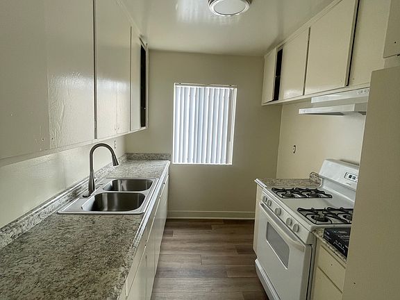 Plank and linoleum flooringOpen floor planGarbage disposalGas stoveLarge closetsVertical blindsFully equipped kitchen