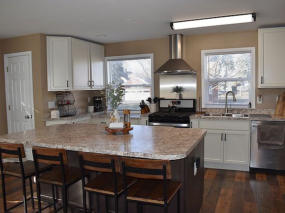 Beautifully remodeled home with 4 beds and 2 new full baths, fenced in yard on a corner lot. Open floor plan with NEW kitchen cabinets, counter tops, huge island and stainless steel appliances. NEW windows. NEW vinyl flooring throughout. NEW roof on home & garage (2021) & new siding on garage with new garage door and opener. Features: new instant water heater, & a/c condenser. New back yard fireplace. MOVE IN READY. Call or text to view 734-625-7962