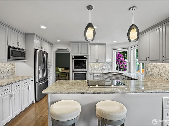 Welcome to Everett’s best-kept secret—Stratton Hill! Tucked on a quiet street with peekaboo Puget Sound views and a peaceful greenbelt backdrop, this beautifully updated 4-bed, 2.5- bath home has been meticulously maintained by the original owner and features over $350K in thoughtful designer updates and improvements. Highlights include a remodeled chef’s kitchen with high-end appliances and custom cabinetry, a 5-piece primary suite with heated tile floors and a walk-in California closet, a main-floor office, and a spacious bonus room upstairs. AC, Milgard windows, newer presidential composition roof, sprinkler system, and oversized 2-car garage. Sought-after Mukilteo Schools. Well-run HOA. Minutes to Boeing, parks, and highways!