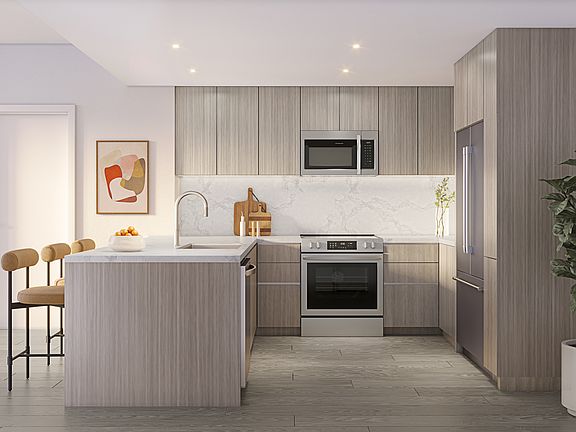 - Exterior features: 9' ceilings (9'10" in 16th Floor units), Bicycle storage, Business Center, Conceierge, Concierge, Flooring: Laminate, Italian-made cabinets with pantries, Keyless entry and smart thermostats, Kitchen islands, Large, floor-to-ceiling windows, On-Site Maintenance, On-Site Management, Package Receiving, Pet Park, Quartz countertops