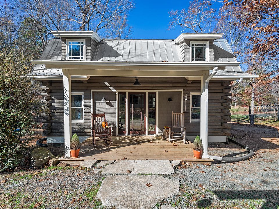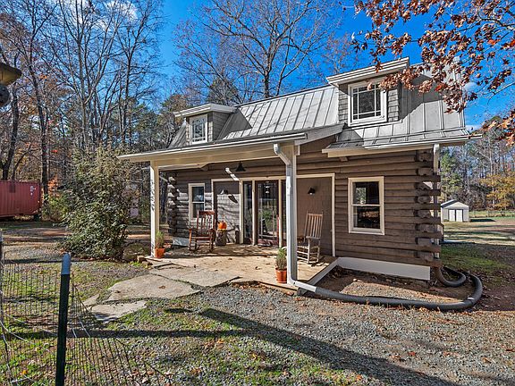 Custom Log Cabin on 1.78 Acres in a delightful, private setting. The home's interior features gorgeous natural-finish pine logs & beams, bathed in natural light. The wood's rich hue is counter-balanced by the white interior walls and vaulted ceiling at the rear of the home. The floors are 5'' pine planks! Come into the front foyer/family room from the gabled, front entry porch. The right side opens straight back to the Kitchen and Dining Room. The Kitchen has stainless steel appliances, granite countertops and a pine-plank center island. The left side of the home has a cozy, private, office. Behind it is a half bathroom/Laundry Room and then the vaulted Living room, aside the Dining Room. The back of the house has Western exposure. The upstairs has 2 bedrooms, each with East-facing dormer windows and full, private bathrooms. The fully fenced property offers sanctuary for creatures great and small. The right-side garden is loaded with Perennials & native plantings. Seller narrative about the garden: We established 2 good sized organic gardens where we grew gorgeous veggies, herbs, beans, greens and fruits. We also got to focus on some perennial, pollinator friendly plantings in spots around the yard. You'll find lilac, lemon balm, butterfly bush, spiderwort, iris, ginger lily, passion vine, lavender, black eyed Susan, wild bergamot, anise hyssop, spicebush, New England aster, swamp milkweed as well as a robust stand of horseradish. You'll also find 3 young apple trees and 2 pears, as well as 6 well-producing blueberries. Just last year, we managed to get 10 pounds of gorgeous blueberries from those 6 little plants. It made some lovely jam, that kept us (and our friends at the holidays) happy for months. Speaking of jam, the fruit produced by the passionvine (aka Maypop) makes for a really special jelly at the end of the season. The stand of elderberries surrounding the chicken coop has really come a long way, from 4 small plants purchased from Weaver Street Market in Hillsborough, to roughly 20 thriving plants in a matter of 3-4 years. They produce beautiful fragrant blooms, followed by heavy clusters of black berries that all manner of wildlife will get if you're not quick enough. The chicken coop housed up to 8 birds, previously. It has a plank up to a robotic door. There is plenty of storage in the 2 sheds, & ''20 Tall'' shipping container (20' X 8' X 10'.) Nestled in the woods. buffered by family farms and small homes, this special spot is secluded but close to ''the Action'' of: Durham (22 minutes), Chapel Hill (19 minutes) & Hillsborough (10 minutes), with direct East & West I-40/I-85 access less than 2 miles away!