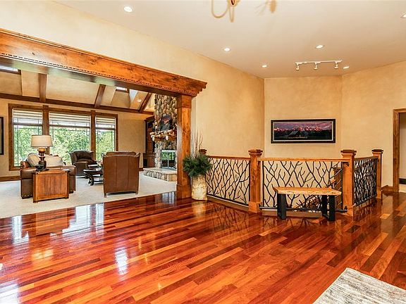 Welcome to the Unsurpassed quality in this amazing Wayne Rasmussen 2004 custom built home on 5.5 acres on a private drive with County Taxes!! Beautiful architectural details throughout with Brazilian cherry hardwood floors, knotty alder and cherry woodwork, 3 custom fireplaces, stone archways and soaring ceilings that are 11 and 12 ft high, plus ceilings that are coffer and tray. Solid wood doors boast of masculine strength and detail. The majestic great room has a floor to vaulted ceiling stone fireplace and oversized windows to view the beautiful back yard. The eat in gourmet kitchen has an oversized breakfast bar with custom wood detail, screen porch and maintenance free deck and a well-placed computer/work area for meal planning and family homework. The main floor also boasts a formal dining room/music room and den, fabulous cherry woodwork, an office with beautiful built ins and the primary bedroom is certainly fit for royalty with a stone wall and archway, custom fireplace and a spa like bath. The other two bedrooms on the main level have their own private bath, and walk in closets. Large main floor laundry and drop zone and a unique ½ bath that won't be forgotten by your guests...a stone wall and one-of-a-kind basin. The 4 oversized garage stalls are finished with professional grade flooring. The lower level is ever as spectacular in size and quality! Enjoy the beautiful bar with granite and lots of natural wood boasting a leather and copper front, copper sink, granite and stone. The custom library leads you to the wine cellar and tasting room which is like non other! The unique door leads you to the insulated room for even subterranean quality for your best wines! Fabulous woodwork everywhere you look, the theatre room, work-out room, craft room (could be a 6th bedroom if desired) or home school room, additional laundry area with a doggie shower, a sound proof golf simulator room, and another garage w/access from the back yard. Two more bedrooms with baths (and heated floors) and a walk out from the inviting family room to the patio area. A truly unique home with over 7400 sq ft of character and comfort. The design, details and luxury in this 5 bedroom 5 ½ bath home is unsurpassed.