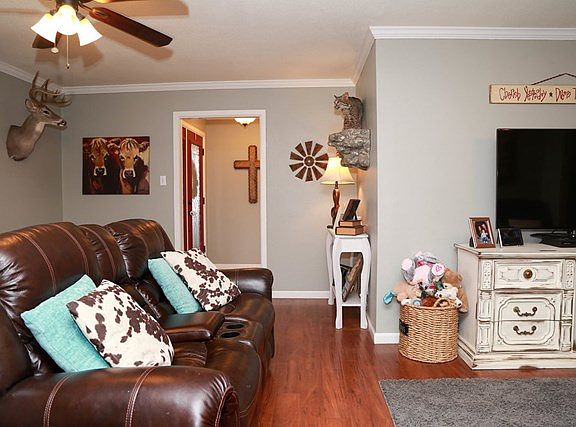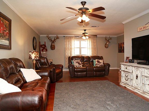 Welcome home to this beautiful 4 bed 3 bath gem, located just outside of city limits and situated on an over sized corner lot. Home has been wonderfully remodeled and features gleaming hardwoods, large bedrooms, a gorgeous master bath, two living areas, workshop, and over sized patio to entertain on. Also features 2 water wells, one for the home and one for the yard! This one is a must see!