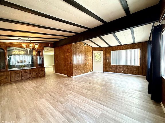 Enter into the bright, oversized living room, the beamed ceilings and built-in storage add extra character and a welcoming atmosphere. The home has been recently upgraded with brand new vinyl flooring throughout. The kitchen is equipped with updated appliances and offers significant storage, including a dedicated pantry. The kitchen opens up to the den with sliding glass doors to the backyard creating a great flow for personal interaction with family and guests. The private primary suite provides a large closet and additional built-in storage. The attached, large bathroom features a walk-in shower, a separate deep soaking bathtub, double sinks, and a vanity area. A separate laundry room offers additional storage, enhancing the home's functionality. This property provides the opportunity for affordable living without sacrificing amenities. Residents enjoy access to a full suite of community facilities, including a refreshing pool and spa, a tennis court, a clubhouse, and an on-site convenience store. Combining generous space, quality updates with the opportunity to add your own style, a private outdoor area, and comprehensive community amenities, this manufactured home is an outstanding value and a must-see!